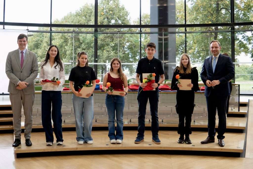 Am 3.9. fand die Preisverleihung des Bundeswettbewerbs Fremdsprachen vom Frühjahr 2025 statt. Pauline Jochmann (Klasse 10b) hat hier unter allen teilnehmenden Schülern Sachsens in der Kategorie Solo mit herausragenden Leistungen teilgenommen (Sprache: Englisch) und wurde daher bei einer Veranstaltung im Landtag in Dresden geehrt. Ihre Leistungen gingen über das schulisch geforderte weit hinaus. Bei der Ehrung war auch der Kulturminister anwesend.