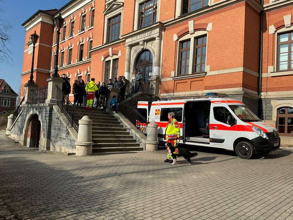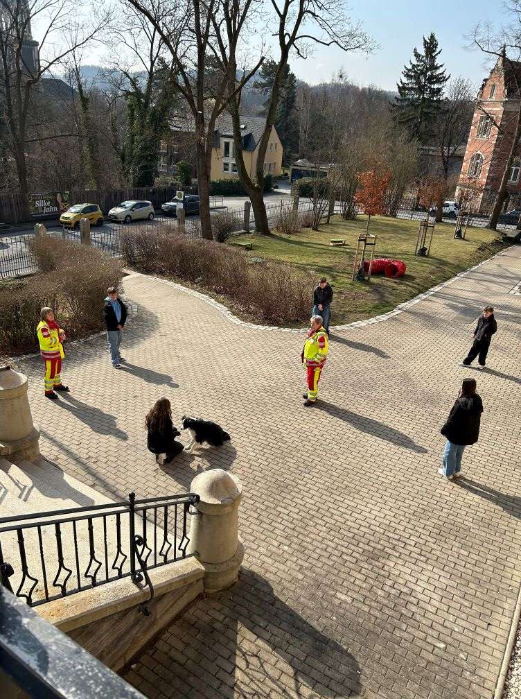 Vierbeinigen Besuch brachte das Team der Hundestaffel vom Arbeiter-Samariter-Bund mit. Sie erklärten den Schülerinnen und Schülern, wie die Ausbildung der Hunde abläuft und wer wollte, durfte Teil der Übungen sein.