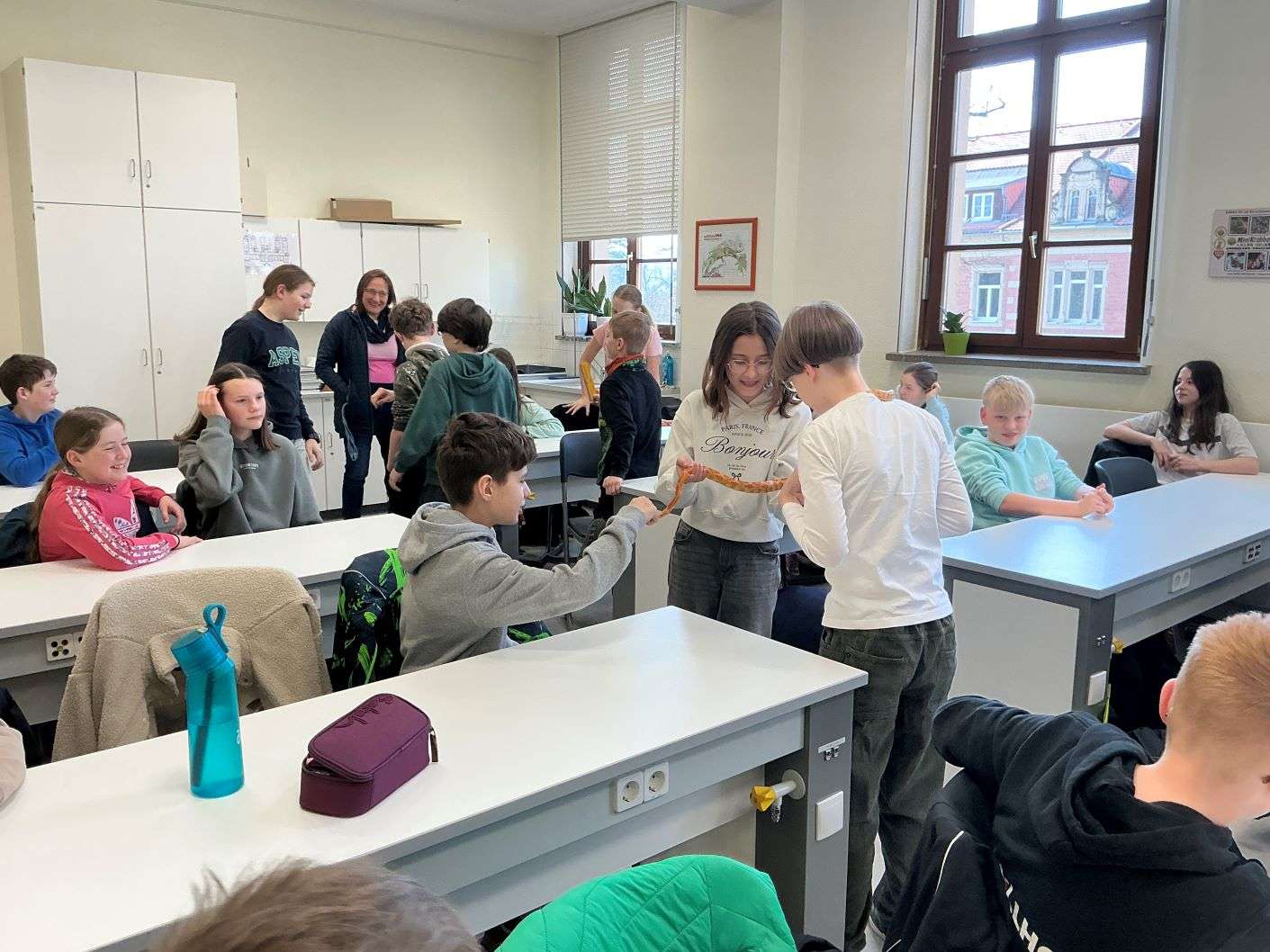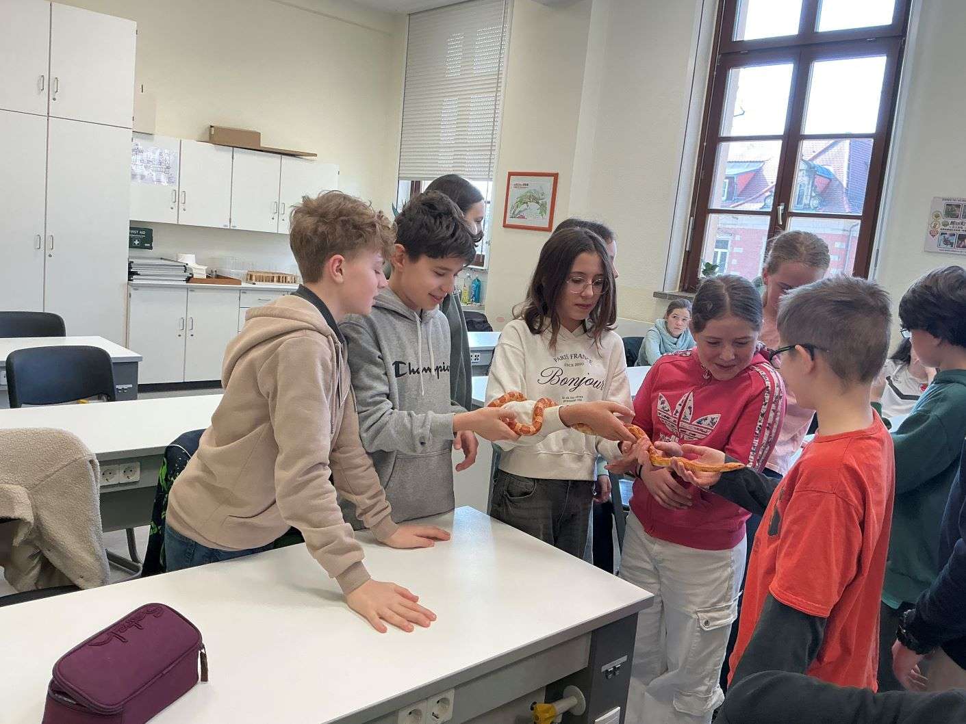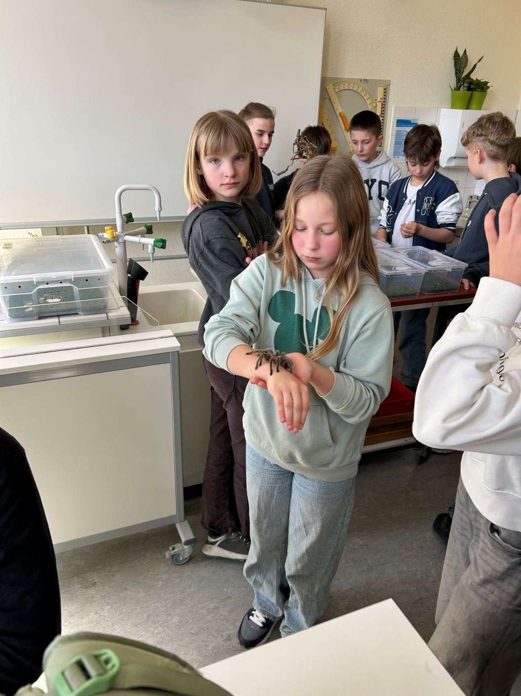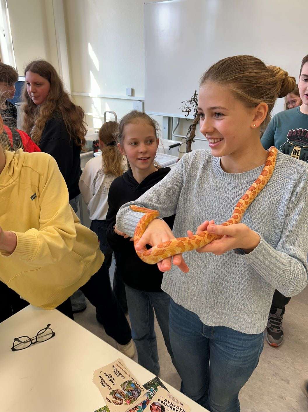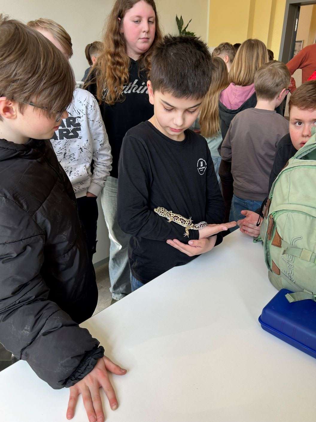 Herr Renner vom Mini Krabelzoo hatte wieder allerlei spannende Tiere im Gepäck und erzählte unseren Schülerinnen und Schülern Wissenswertes zur Haltung dieser. Viele waren mutig genug, die Spinnen und Schlangen anzufassen.