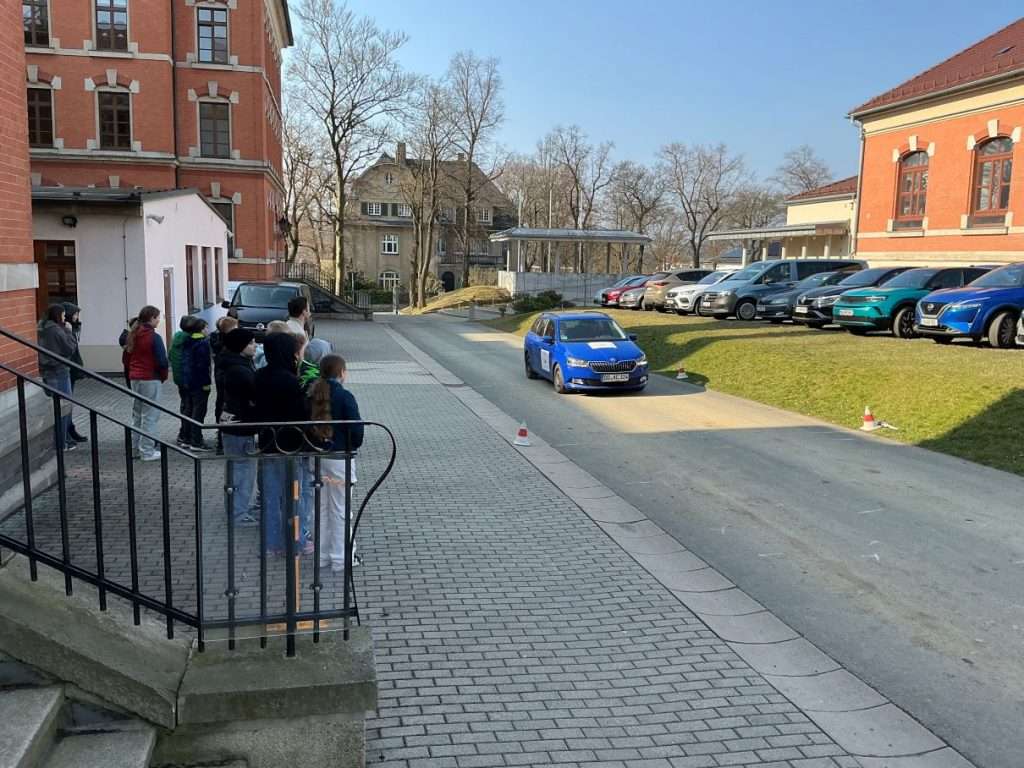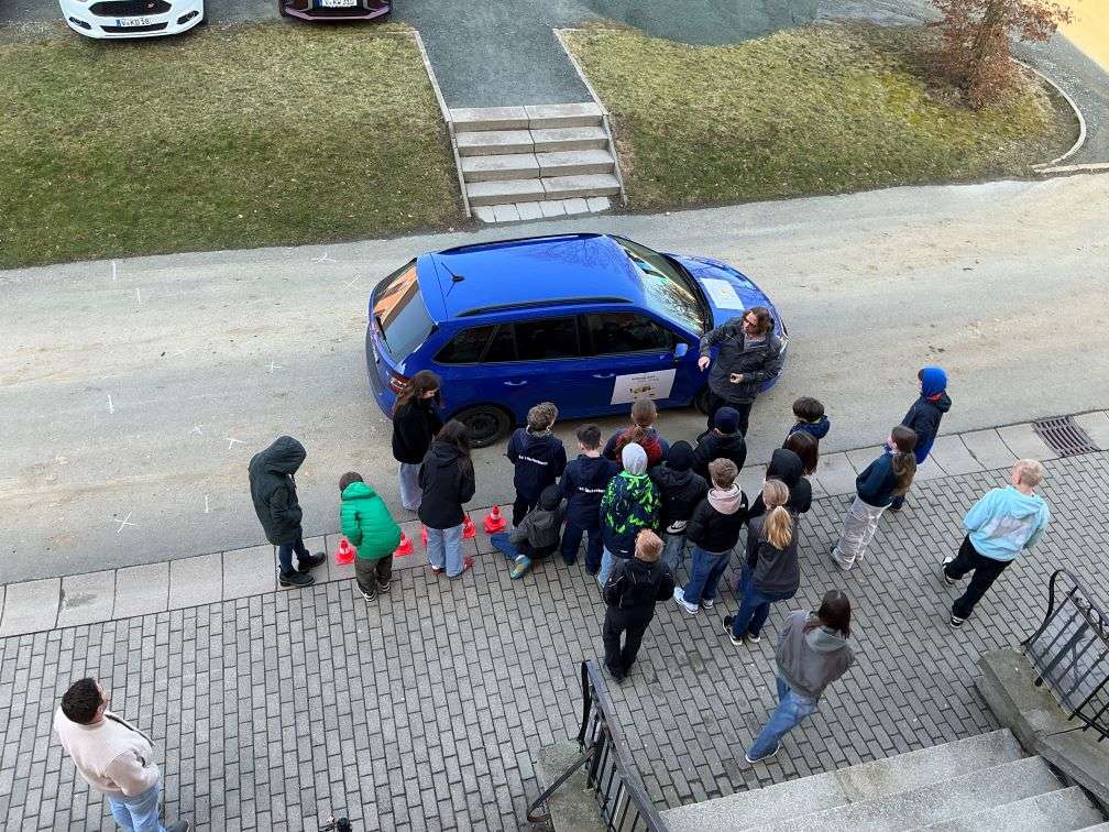 Herr Weiß vom ADAC verdeutlichte den Jugendlichen anschaulich, was Reaktions-, Brems- und Anhalteweg sind und erklärte, warum korrektes Anschnallen im Auto lebenswichtig ist. Das Programm „Achtung Auto“ war wieder sehr lehrreich für die Jungen und Mädchen.