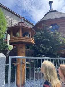 Das Wetter meinte es gut mit uns und so kamen wir auf dem Rückweg ordentlich ins Schwitzen. Für ein gemeinsames Foto machten wir nochmal Rast bei der tollen Schaukel und dann liefen wir zurück zur Schule.