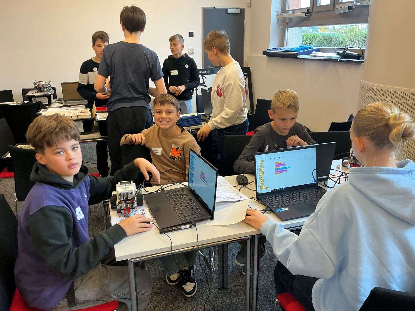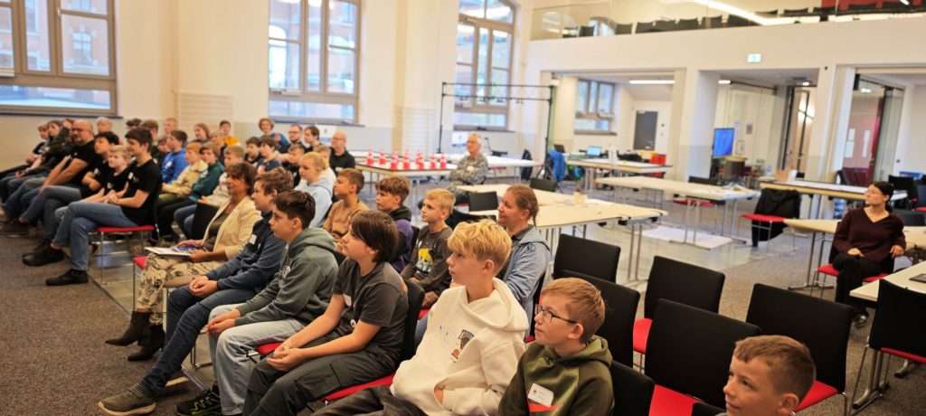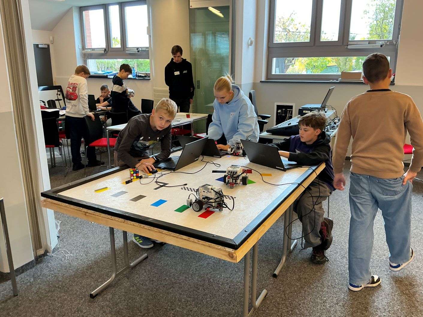 In den Arbeitsbereichen herrschte sofort reges Treiben: Es wurde programmiert, geschraubt, getestet und optimiert. Die Atmosphäre war voller Konzentration, aber auch Vorfreude – schließlich stand ein Tag voller technischer Herausforderungen und spannender Wettbewerbe bevor.