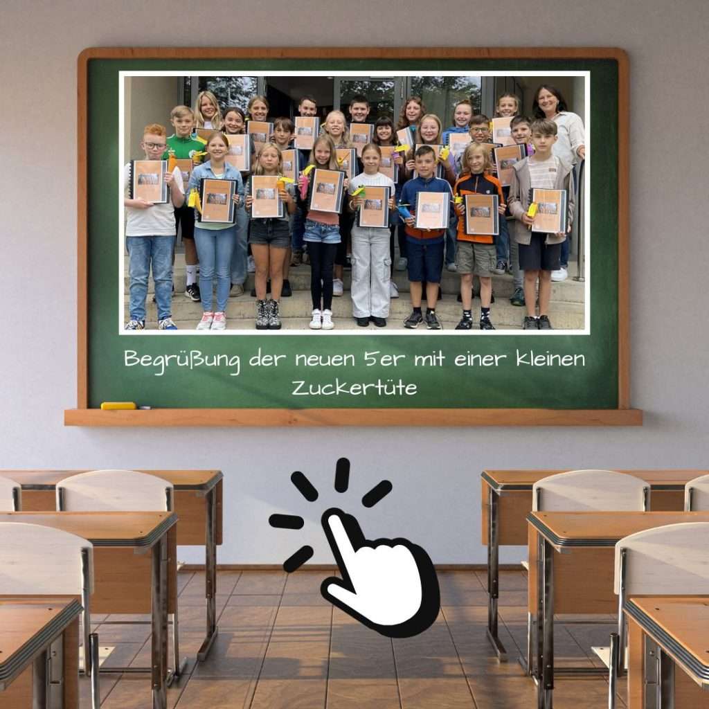 Seit vielen Jahren ist es bereits zur schönen Tradition geworden, dass die Schülerinnen und Schüler der 5. Klassen mit einer kleinen Zuckertüte begrüßt werden und eine Zeugnismappe erhalten. Dies finanziert der Förderverein. Einen Beitrag über den 1. Schultag 2023 finden Sie hier.