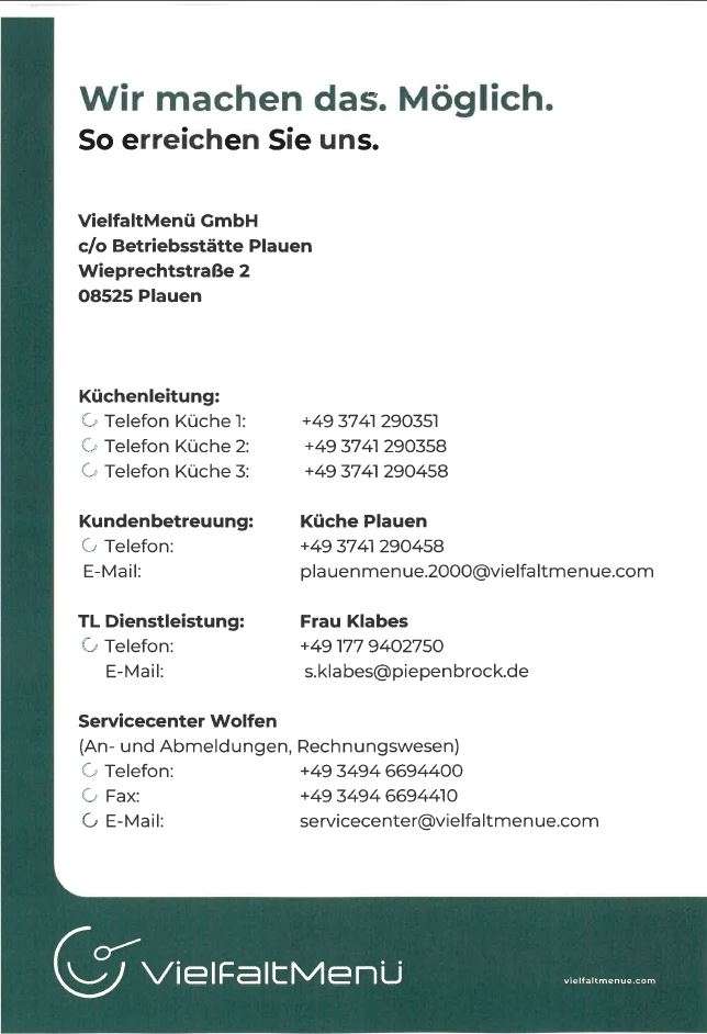 Die Mittagessenversorgung am Julius-Mosen-Gymnasium erfolgt über den Anbieter VielfaltMenü GmbH. Flyer
