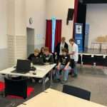 Am Wettbewerbstag war das Sprach- und Kommunikationszentrum (SKZ) des Julius-Mosen-Gymnasiums bestens ausgelastet. Während vor der Bühne die einzelnen Stationen zu finden waren, hatte im hinteren Teil und auf der Galerie jedes Team seinen Arbeitsplatz um an den spannenden Aufgaben zu tüfteln. Teilnehmende Schulen waren: das Ev. Gymnasium Mylau, das Lessing-Gymnasium Döbeln, das Lessing Gymnasium Plauen, die Oberschule Leubnitz, ein Team der Oelsnitzer Firma Simba n³, das Gymnasium Markneukirchen, das Diesterweg-Gymnasium Plauen und das Gymnasium „Am Sandberg“ Wilkau-Haßlau.