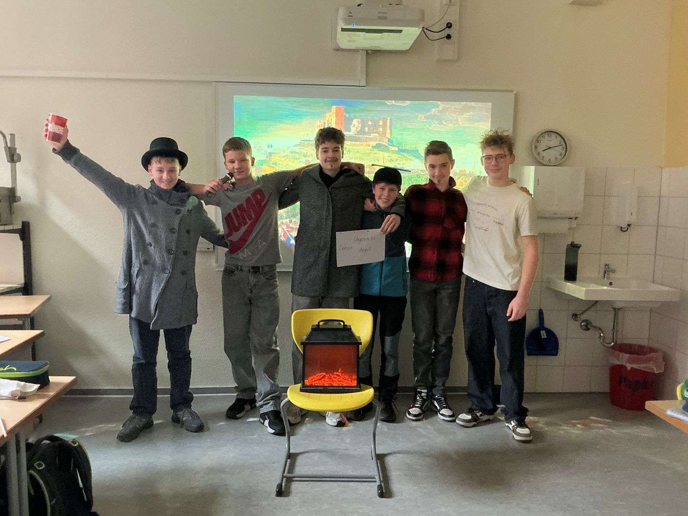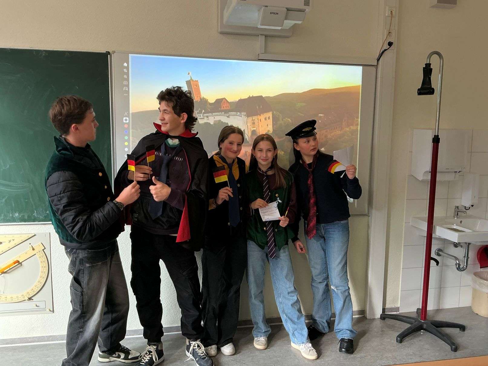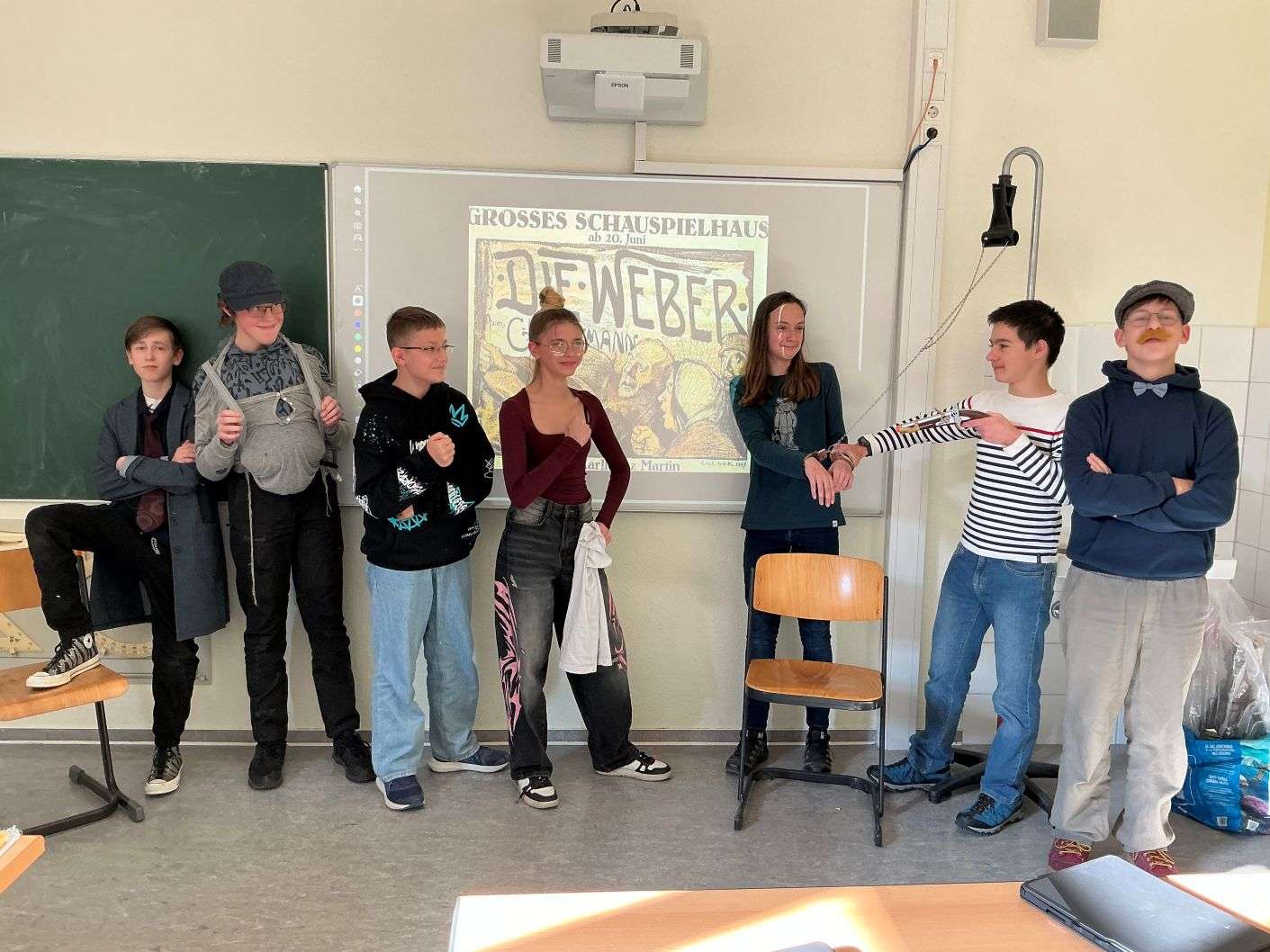 Egal ob als fiktionaler zeitreisender Reporter, als erzählerischer Historiker, in authentischen Kostümen, mit digitalen Hintergründen und selbstgebastelten Requisiten – die Schülerinnen und Schüler haben das Wartburgfest, die Karlsbader Beschlüsse, das Hambacher Fest sowie den schlesischen Weberaufstand zum Leben erweckt (von wegen „Geschichte ist ausgestorben“!).