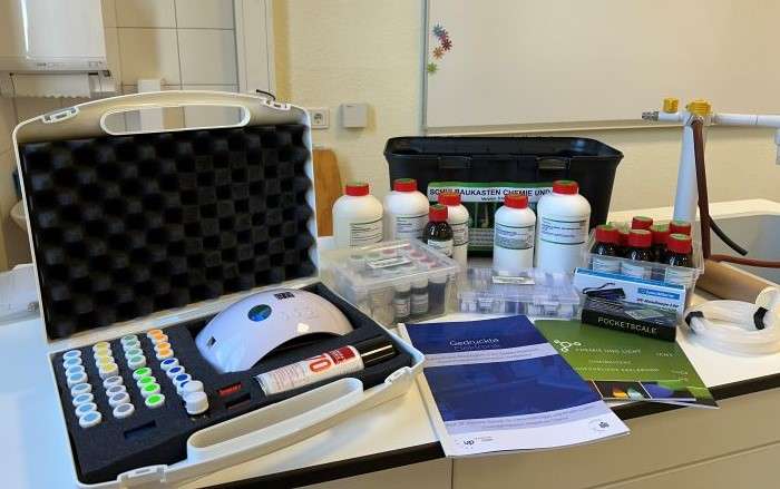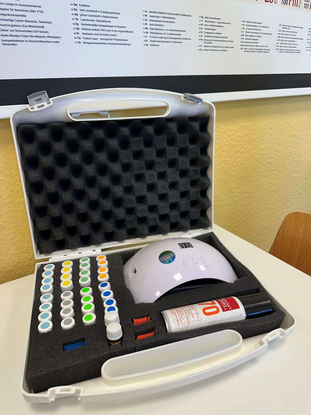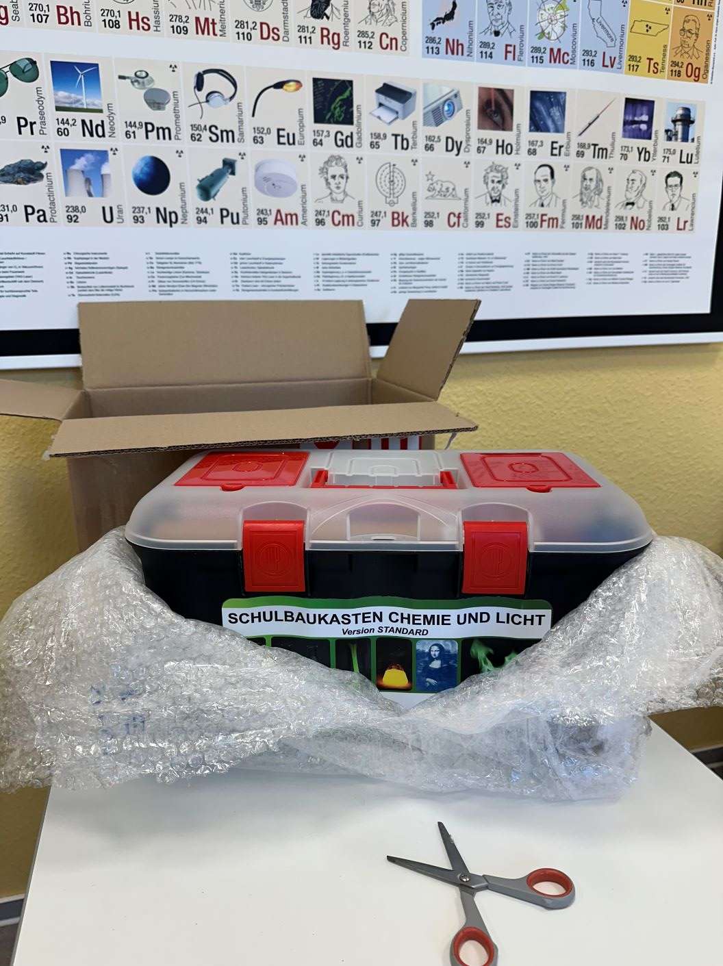 Bewerbung erhielt, wurde aufgestockt (FONDS DER CHEMISCHEN INDUSTRIE im Verband der Chemischen Industrie e.V. ). Da schon eine „Wunschliste“ in der Fachschaft vorlag, ging dann alles relativ schnell: mit dem Geld des Förderfonds wurden zwei spezielle Experimentierkästen angeschafft, die einerseits das fächerübergreifende Lernen (Chemie, naturwissenschaftliches Profil, Kunst) intensivieren sollen, andererseits werden bisher nicht durchführbare Phänomene auf praktische Weisen den Lernenden erfahrbar gemacht – und diesen sind besonders spannend. Bei beiden spielt das Thema „Licht“ eine Rolle.