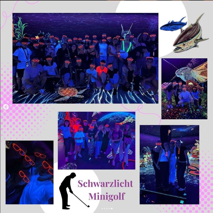 Wir trafen uns erst 19 Uhr wieder vor der Jugendherberge und brachen zum Schwarzlichtminigolf auf, das wohl größte Highlight aller Mitfahrenden. Nach knapp 2 Stunden voller Action und Spaß, verließen wir die Anlage wieder und machten uns auf den Weg zurück zur Jugendherberge, somit war auch schon der 2. Tag beendet.